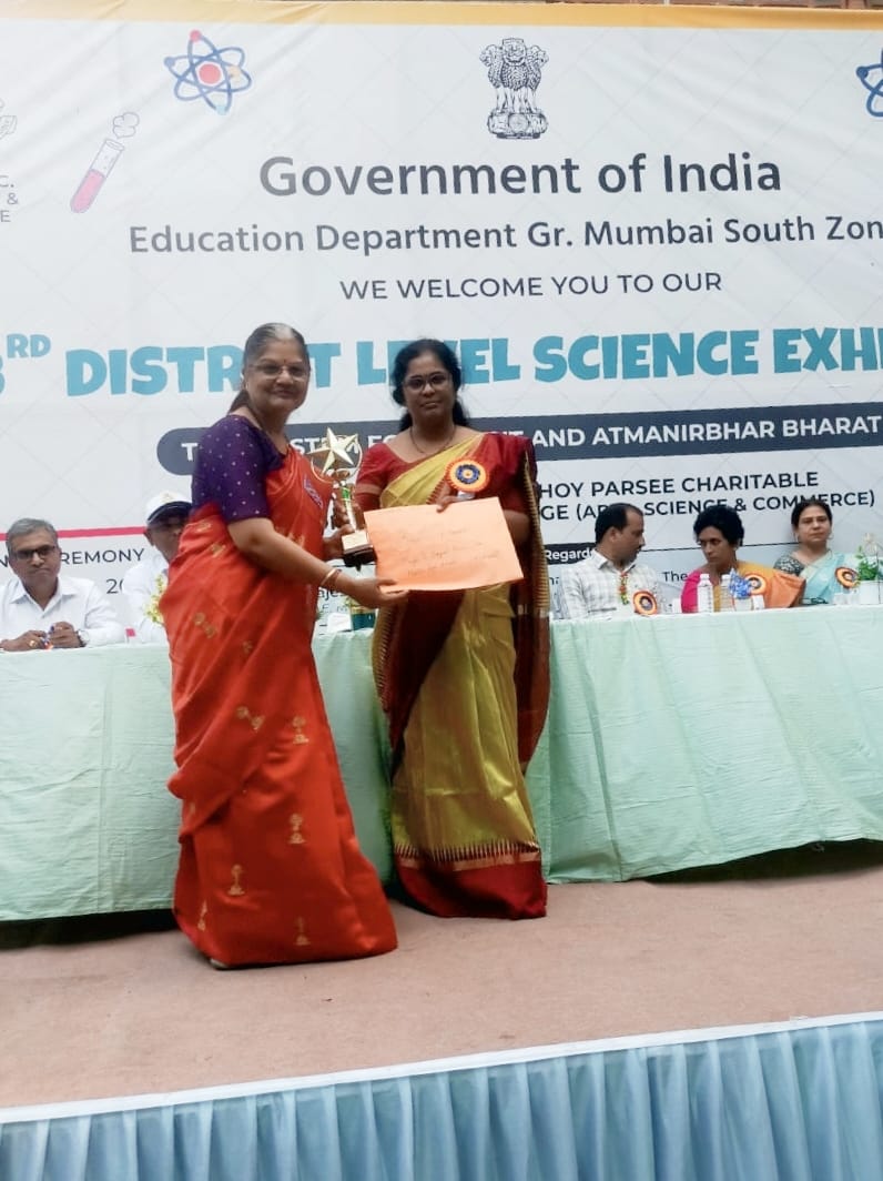 At the Ward Level Science Exhibition, the project was well received and appreciated by the judges for its originality, clarity of explanation, and effective demonstration of scientific principles. In recognition of its merit, the project was awarded 3rd Prize. The same project was then selected to represent the ward at the Mumbai District Level Science Exhibition, where it earned 2nd Prize, bringing laurels to the school. This achievement highlights Mrs. Savita Nagananda’s commitment to innovative teaching methodologies and her efforts to promote activity-based and experiential learning in science education. Her contribution has enhanced the academic reputation of the school and serves as an inspiration for both students and fellow educators.